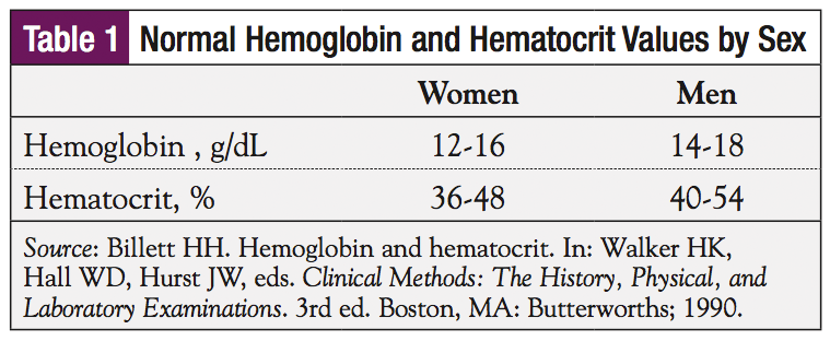 - Billett HH. Hemoglobin and hematocrit. In: Walker HK, Hall WD, Hurst JW, eds. Clinical Methods: The History, Physical, and Laboratory Examinations. 3rd ed. Boston, MA: Butterworths; 1990.