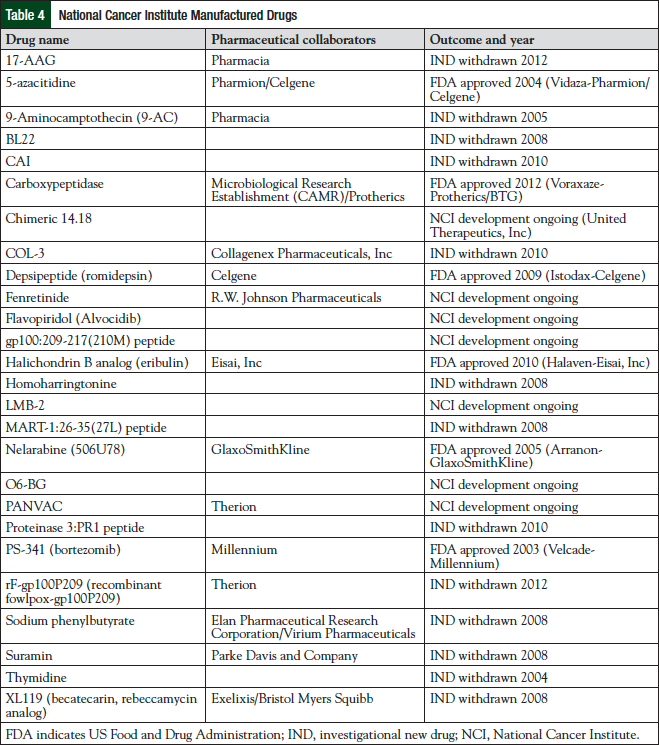 One such mechanism was the Group C designation established in 1976 by the NCI, with US Food and Drug Administration (FDA) approval. The agents that were considered worthy of altering the standard of care, but were not yet available commercially, were handled through this program.1,3 Since 1975, the NCI has approved or distributed 21 agents under the Group C protocol mechanism.3,4 The Group C protocol mechanism is no longer active, and the last protocol was closed to accrual in 2005. Historically, Group C–designated agents: