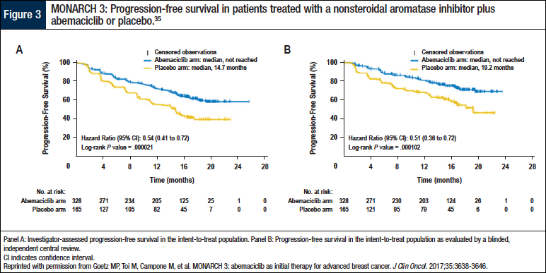 35. Goetz MP, Toi M, Campone M, et al. MONARCH 3: abemaciclib as initial therapy for advanced breast cancer. J Clin Oncol. 2017;35:3638-3646.