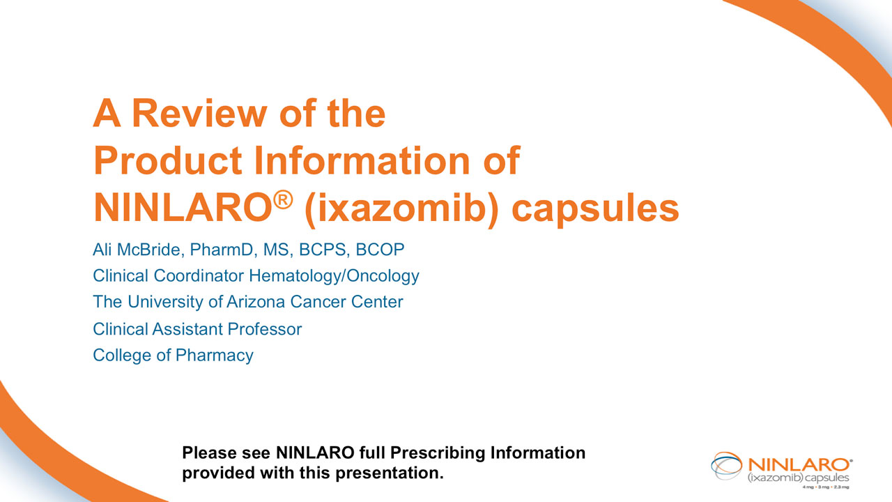 Please join us for a review of the product information for NINLARO® (ixazomib)